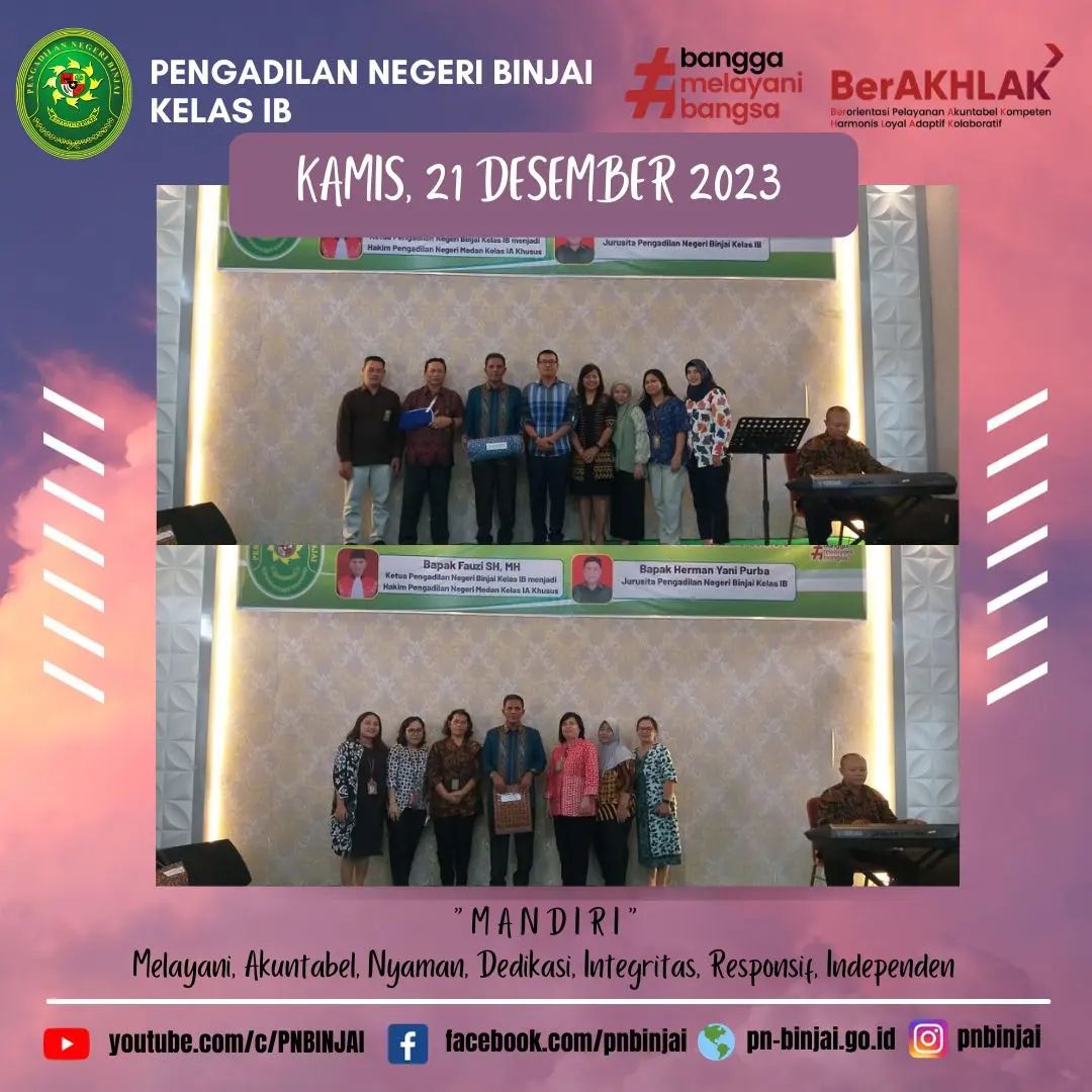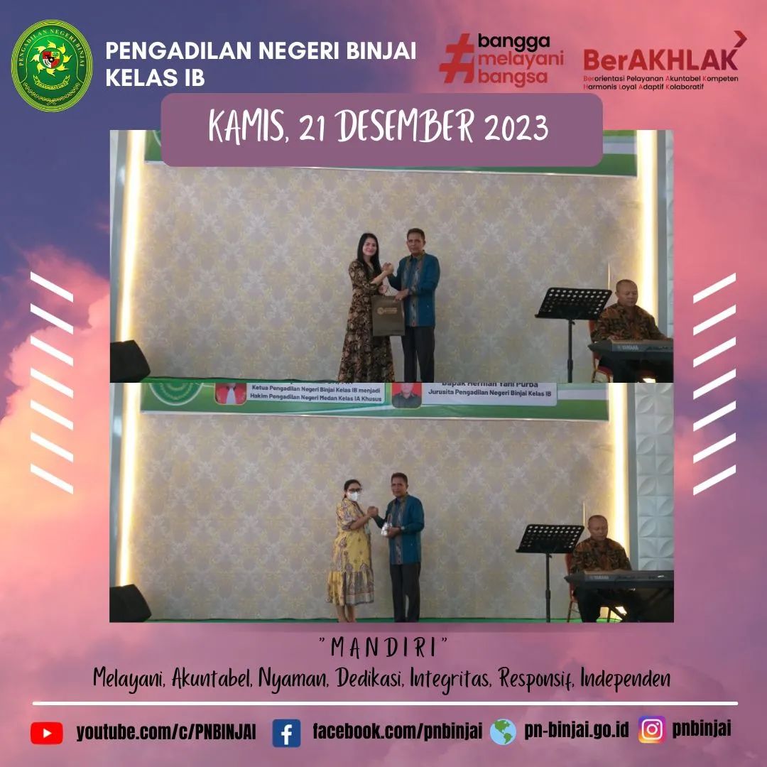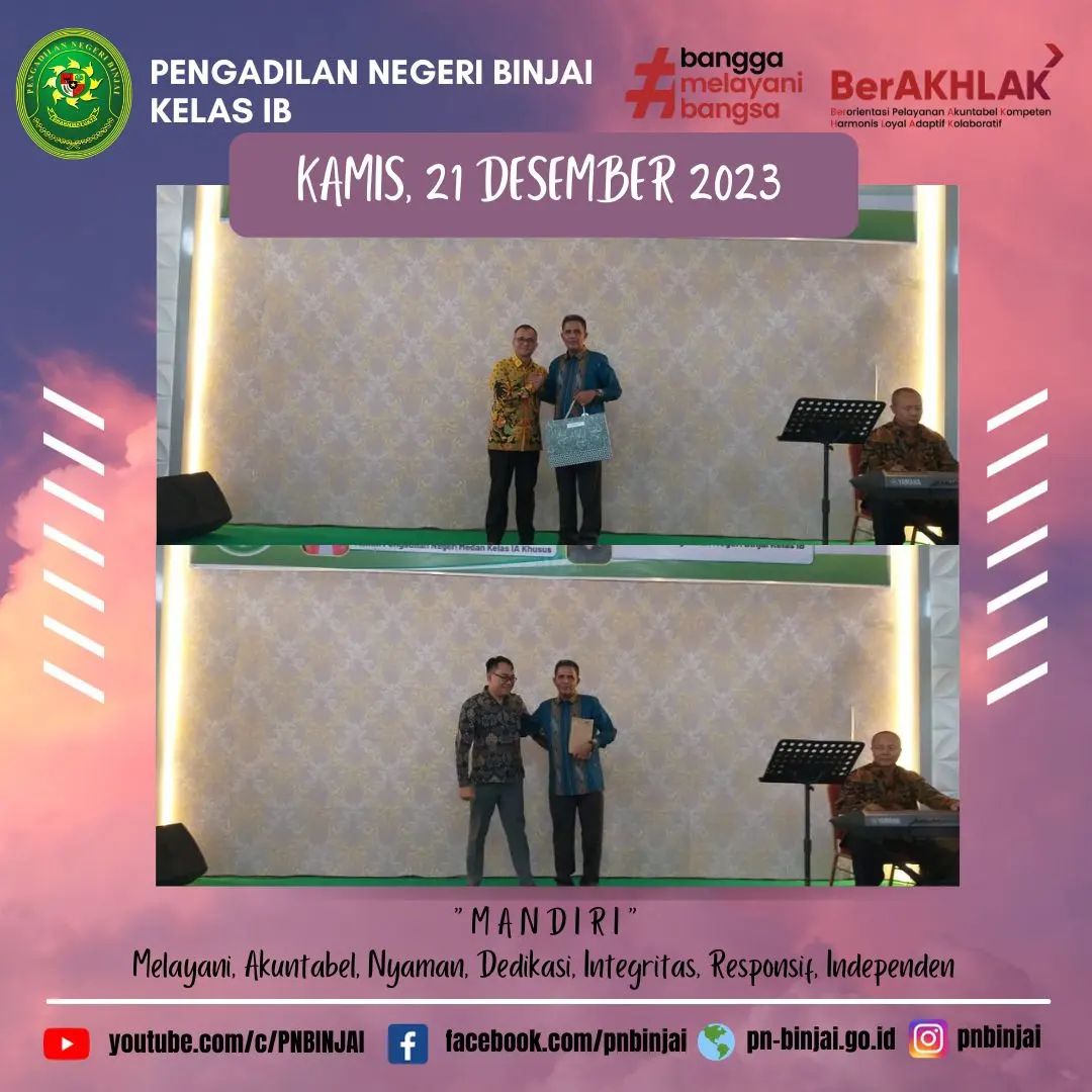 Acara Pengantar Alih Tugas Bapak Fauzi, S.H., M.H. Ketua Pengadilan Negeri Binjai Kelas IB menjadi Hakim Pengadilan Negeri Medan Kelas IA Khusus, dan Purnabakti Bapak Herman Yani Purba Jurusita Pengadikan Negeri Binjai Kelas IB