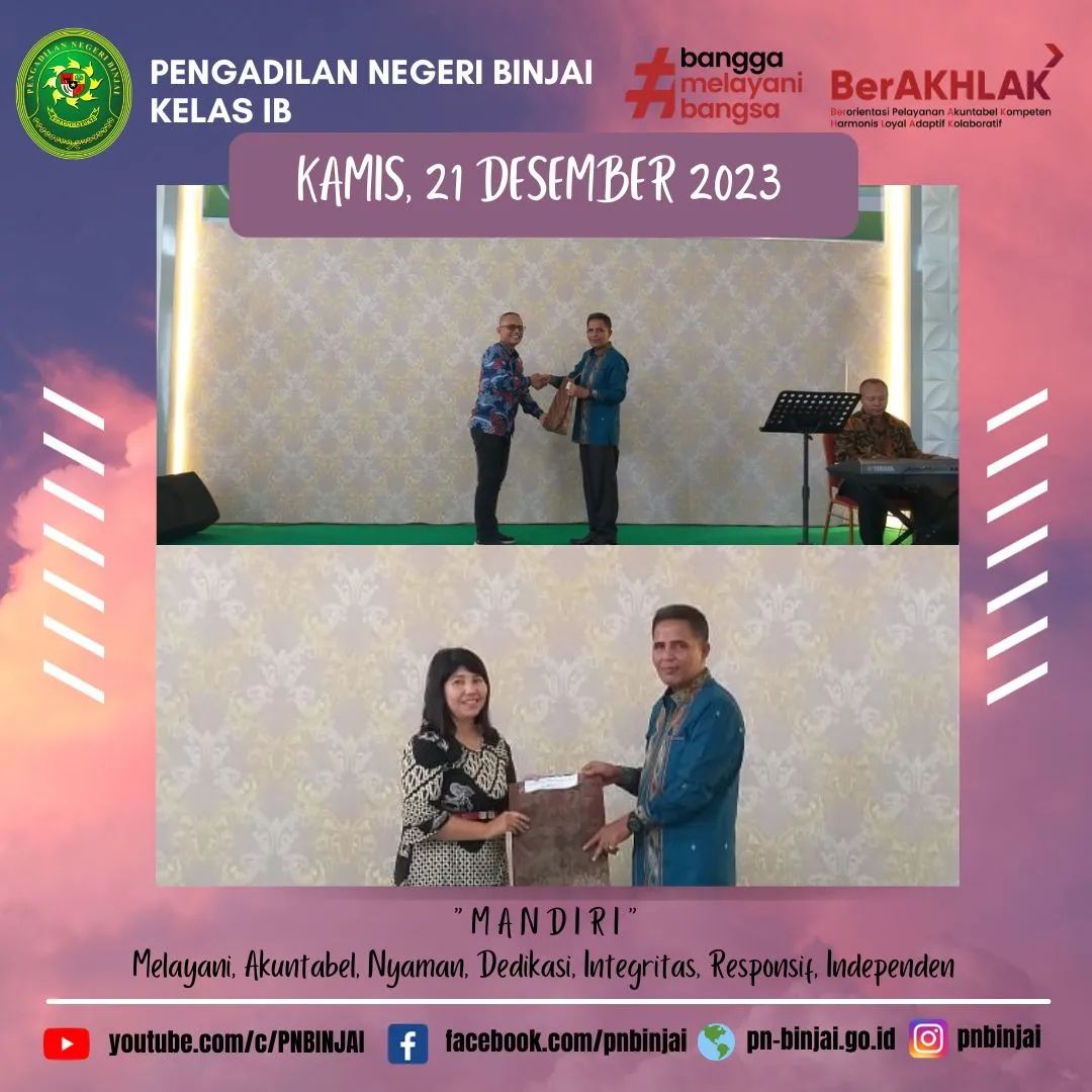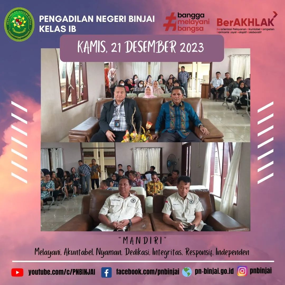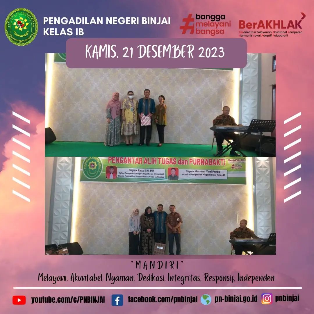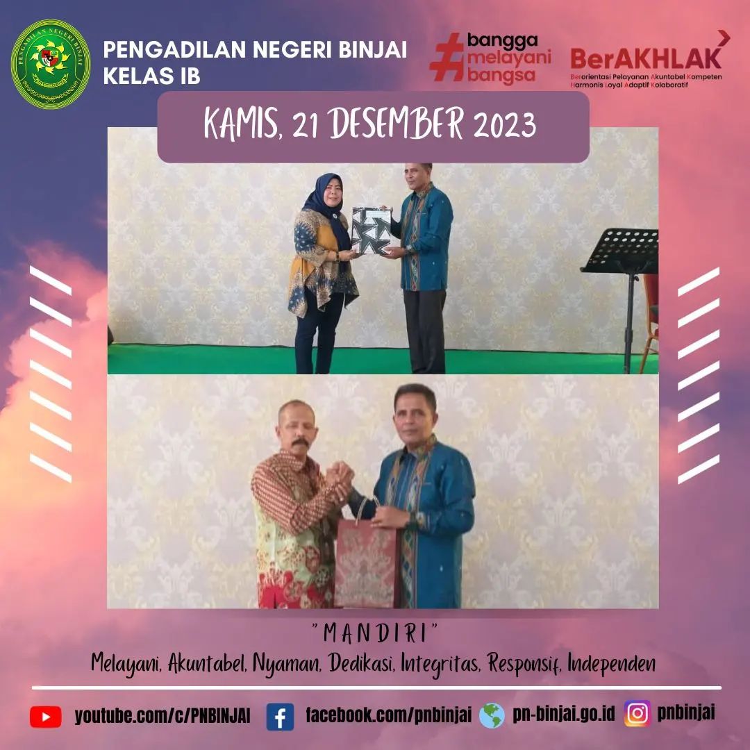 Acara Pengantar Alih Tugas Bapak Fauzi, S.H., M.H. Ketua Pengadilan Negeri Binjai Kelas IB menjadi Hakim Pengadilan Negeri Medan Kelas IA Khusus, dan Purnabakti Bapak Herman Yani Purba Jurusita Pengadikan Negeri Binjai Kelas IB