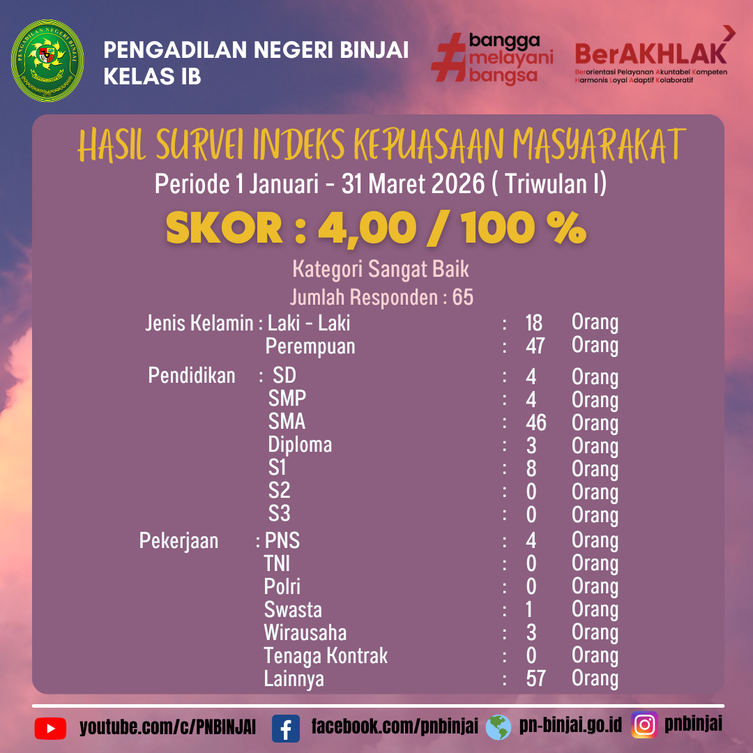 Mahkamah Agung RI pada tanggal 9 Januari 2014 telah menerbitkan Peraturan Mahkamah Agung Republik Indonesia Nomor 1 Tahun 2014 tentang Pedoman Pemberian Layanan Hukum Bagi Masyarakat Tidak Mampu di Pengadilan Negeri Binjai