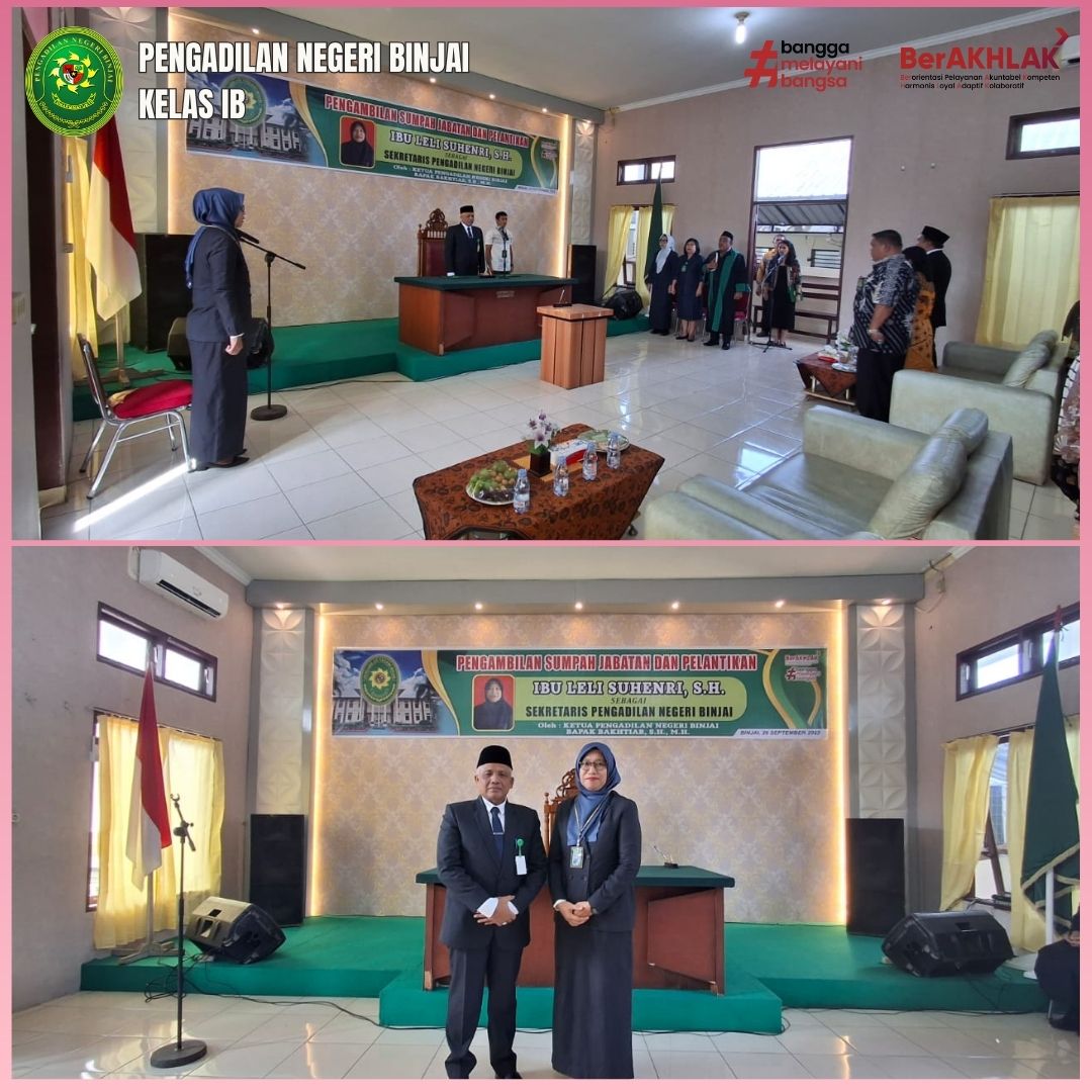Acara berlangsung khidmat dengan dihadiri oleh para hakim, pejabat struktural dan fungsional, staf pelaksana, serta seluruh keluarga besar Pengadilan Negeri Binjai. Dalam prosesi tersebut, Ketua Pengadilan Negeri Binjai secara resmi mengambil sumpah jabatan dan melantik Ibu Leli Suhenri, S.H. sebagai Sekretaris PN Binjai.