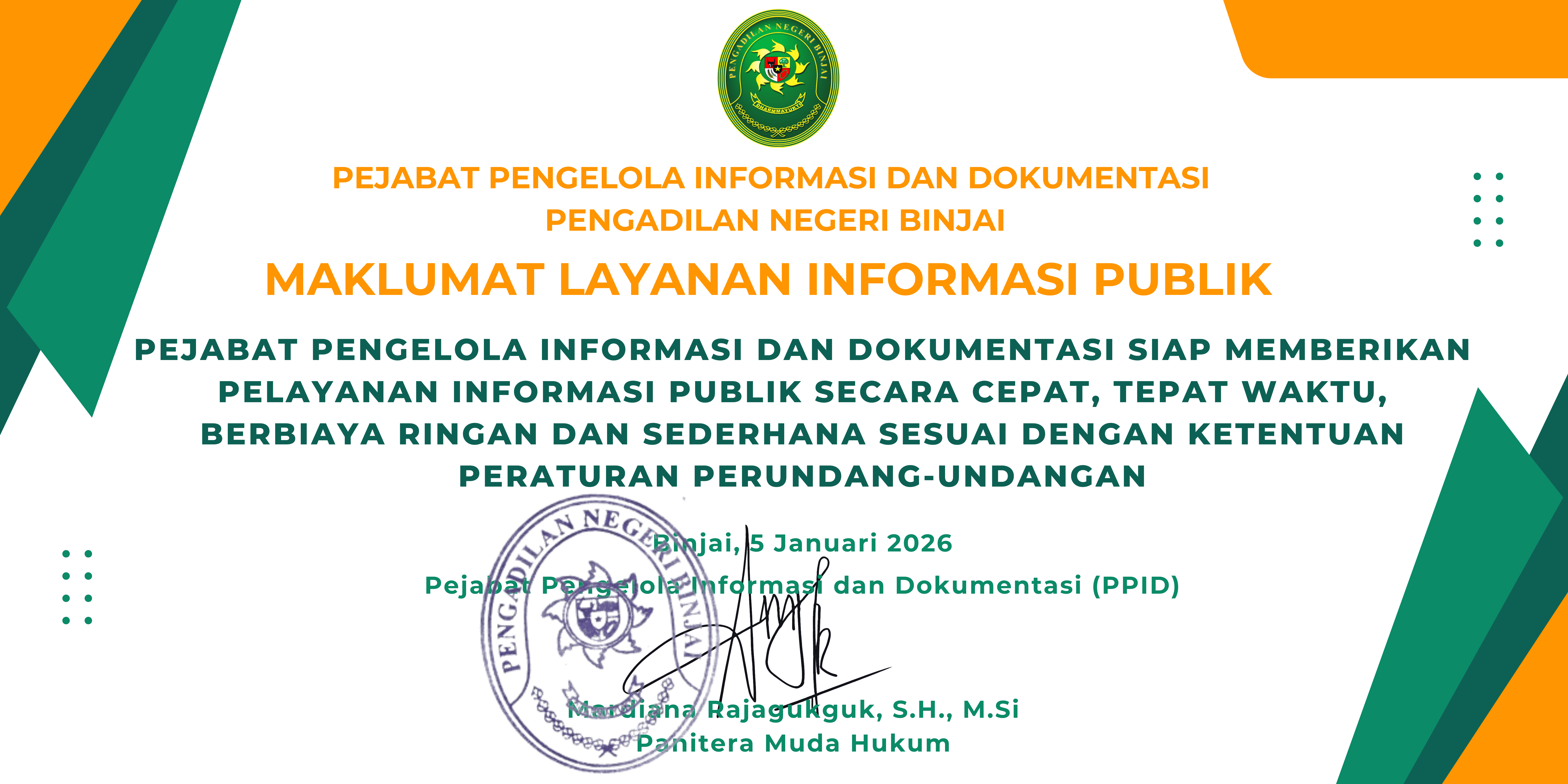 Standar & Maklumat Pelayanan pada Pengadilan Negeri Binjai mengacu pada:
